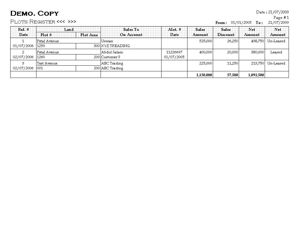 Cleantouch Developers Management System is developed specially for business related to sale of re-sized plot on specific payment schedule. For example user of software first of all enter transaction of purchase of big sized plot and then apply additional expenses on plot and then re-size big plot to different small sized plots with allotment of numbers and then start selling small sized plot.