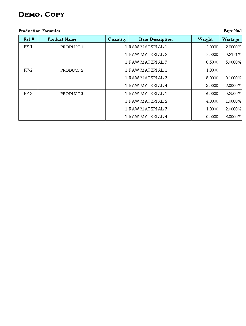 The software features Formula Based Production module. As a first step user will inform software about which product consume what type of materials in what qty for production of single unit and what in-direct expenses accrued at the time of products. After that all the time of production user will just have to inform software how much qty has been produced to calculate consumption, wastage & in-direct expenses automatically and then calculate cost of production.